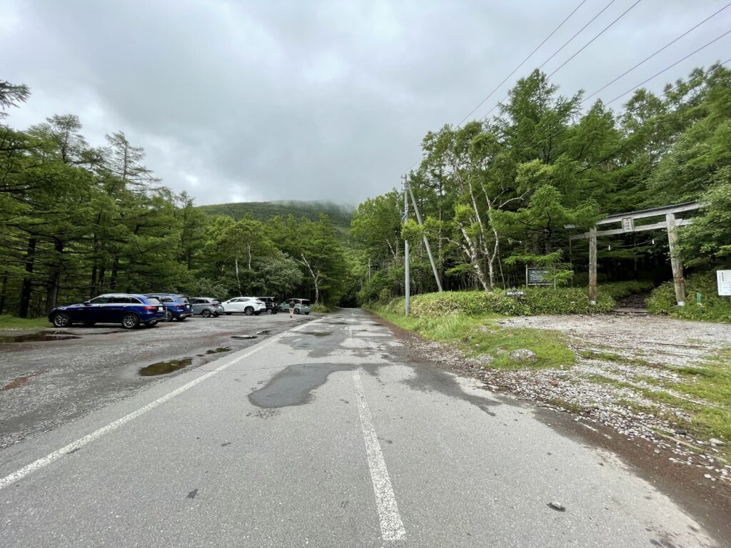 これらを通過して、さらに山道を進むと 蓼科山七合目登山口駐車場が見えてきます。